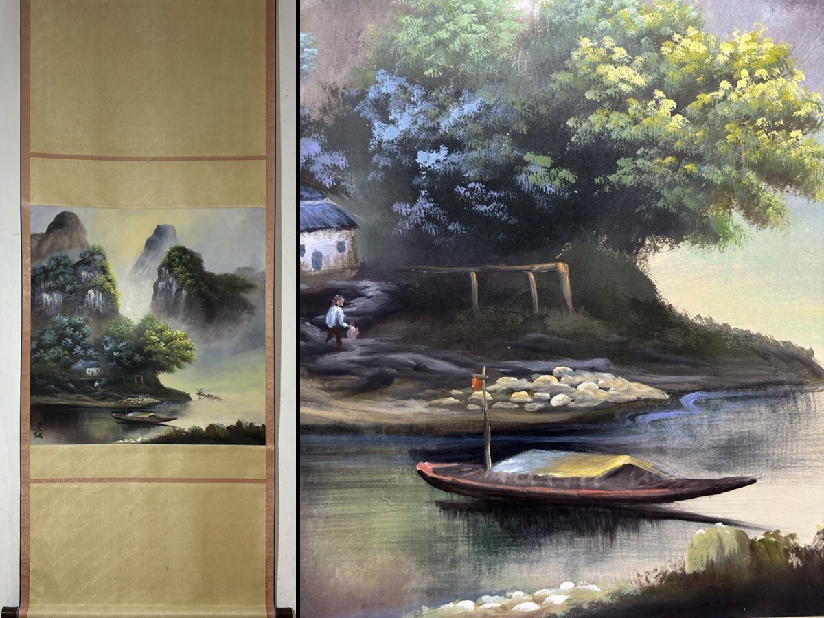 - 中国書画「 林風眠 山水泛舟図」肉筆紙本 掛け軸 墨寶妙品 書画立軸 巻き物 古美術 旧蔵出