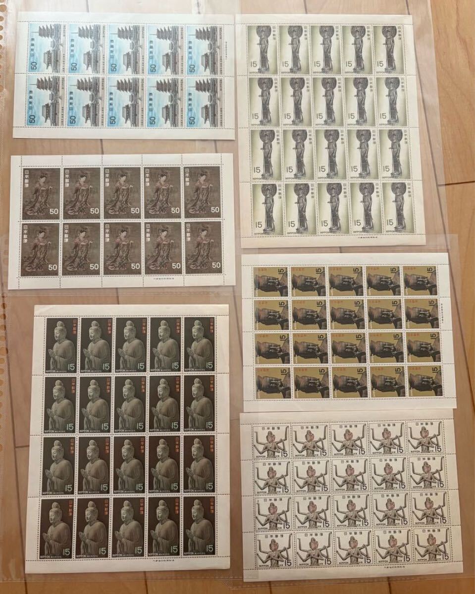 - 記念切手まとめ売り 国宝シリーズ 吉祥天 五重塔 百済観音 月光仏 阿修羅 弥勒菩薩 切手シート
