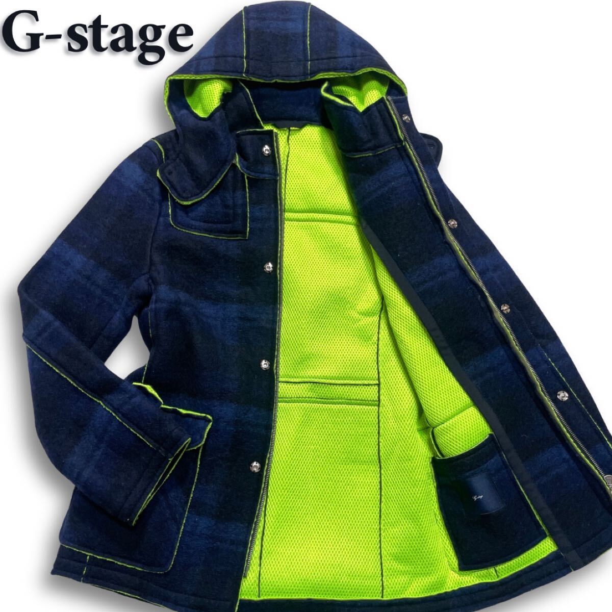 > 極美品/希少モデル◎ ジーステージ G-stage ボンディングジャケット LANIFICIO ROMA 高級イタリア製生地 タータンチェック ブルー系 46