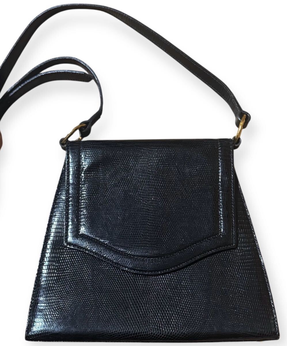 - イヴサンローラン ビンテージ 型押し レザー フラップ ショルダーバッグ ブラック 斜め掛け OLD ポシェット