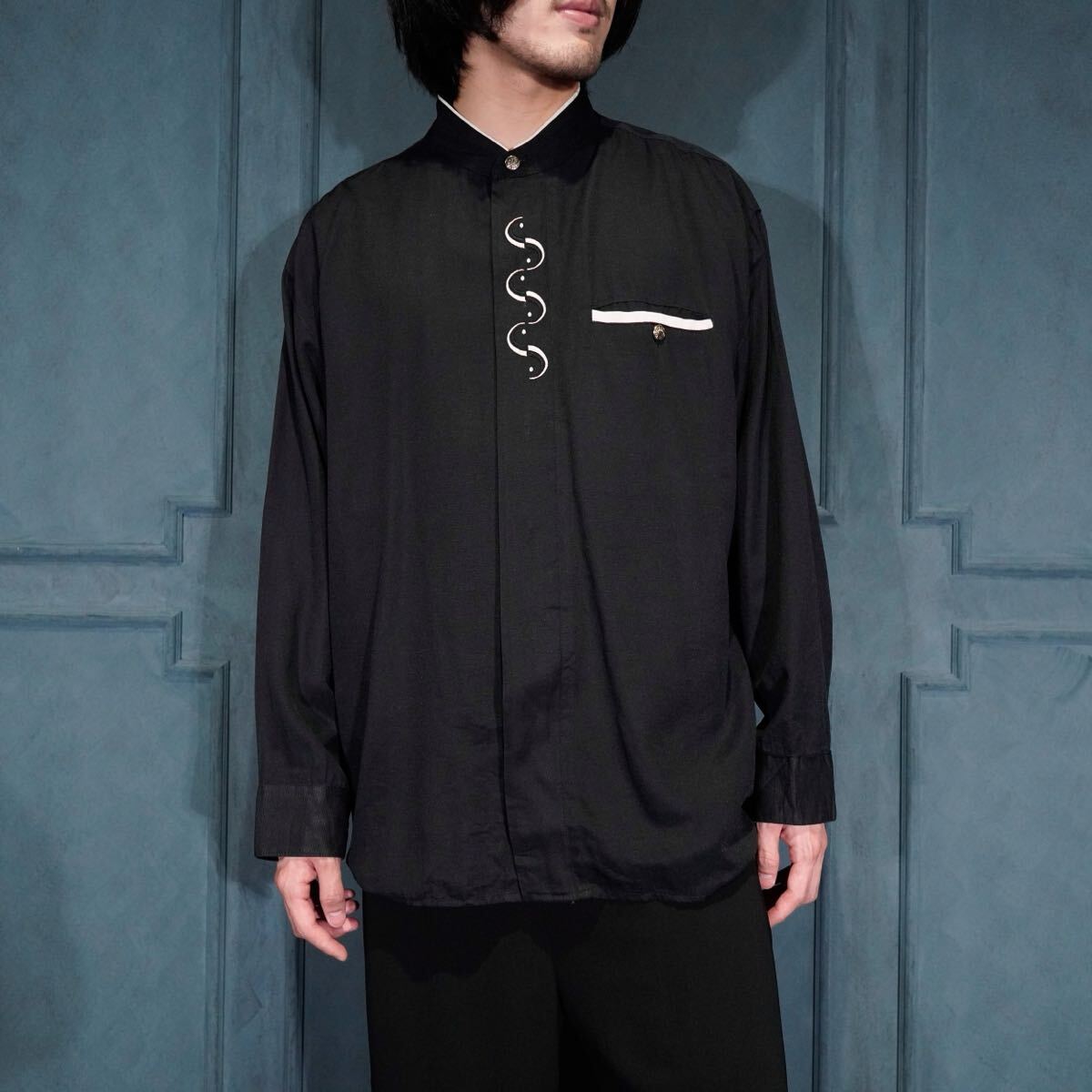 > USA VINTAGE TRUTUS BIANCARRA EMBROIDERY DESIGN BAND COLLAR SHIRT/アメリカ古着刺繍デザインバンドカラーシャツ