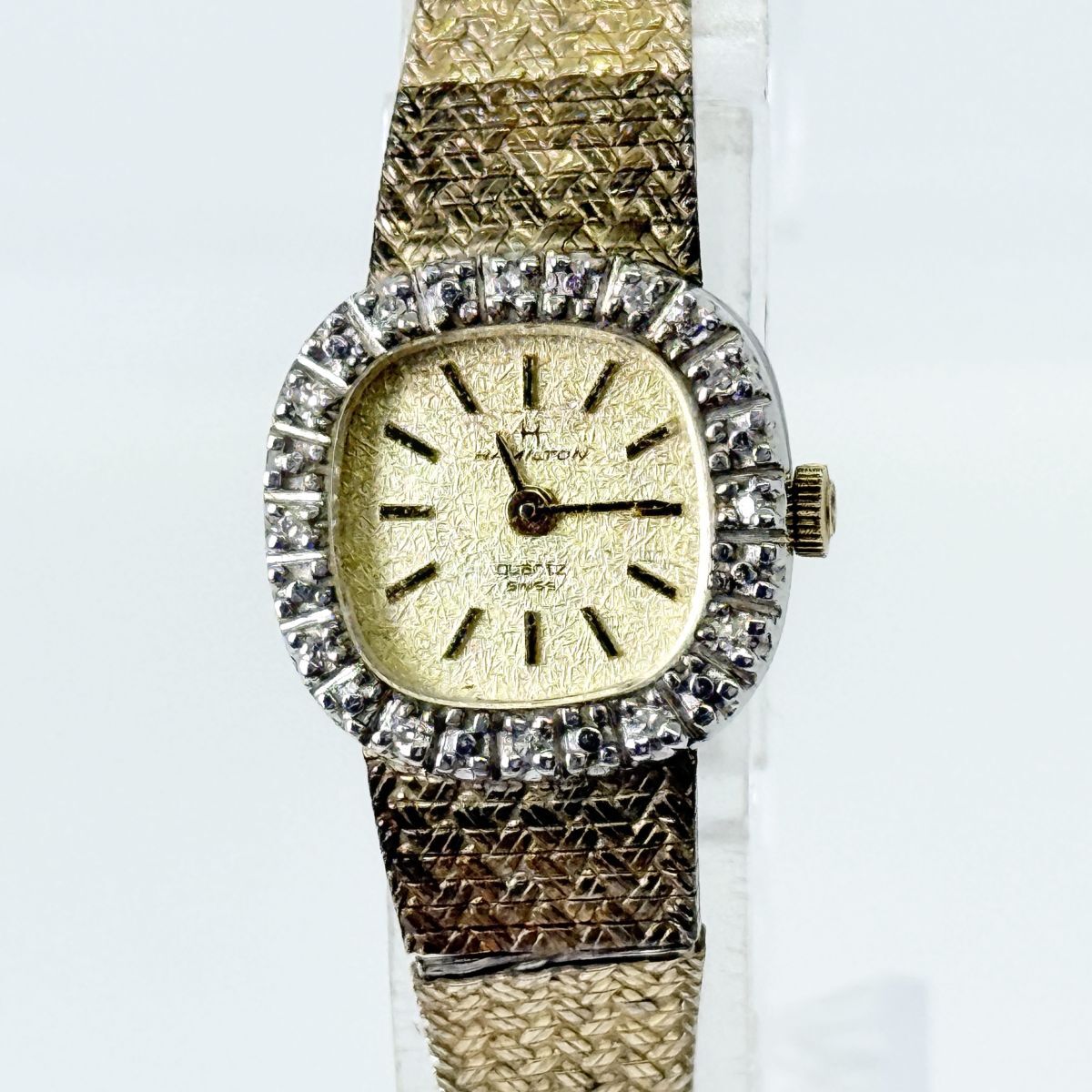 > T6111 HAMILTON ハミルトン QZ 金 SS ストーンベゼル 10K RGP ヴィンテージウォッチ