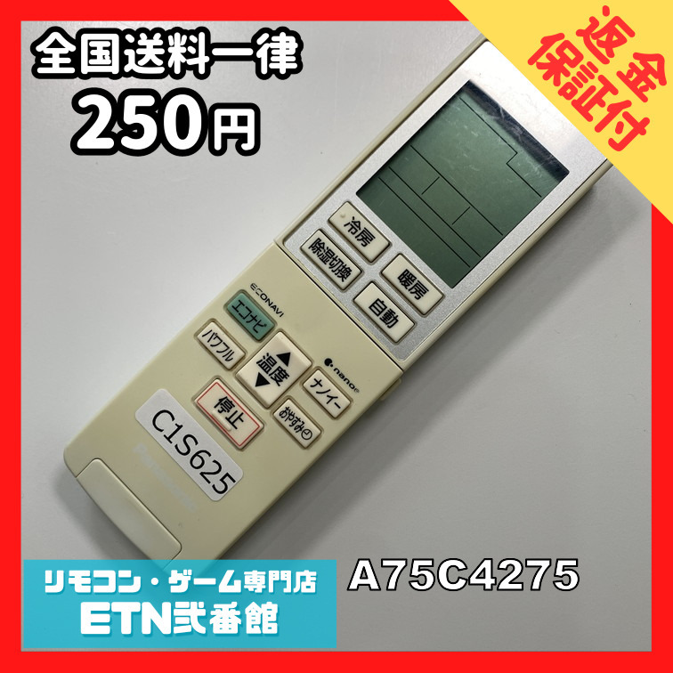 C1S625 【送料250円】エアコン リモコン / Panasonic パナソニック A75C4275 動作確認済み★即発送★ 冷房 暖房