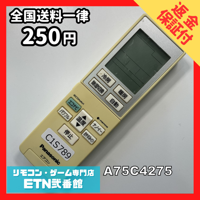 C1S789 【送料250円】エアコン リモコン / Panasonic パナソニック A75C4275 動作確認済み★即発送★ 冷房 暖房拍卖