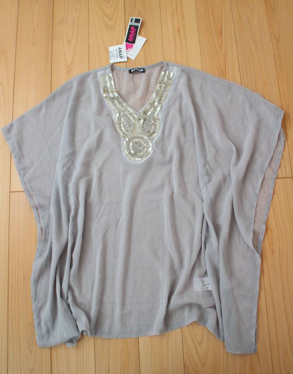 > 【素敵コスパ♪】新品*ANAPアナップ*今旬エキゾチックシースルースパンコールラグジュアリードルマリンチュニック freesize グレー夏クール