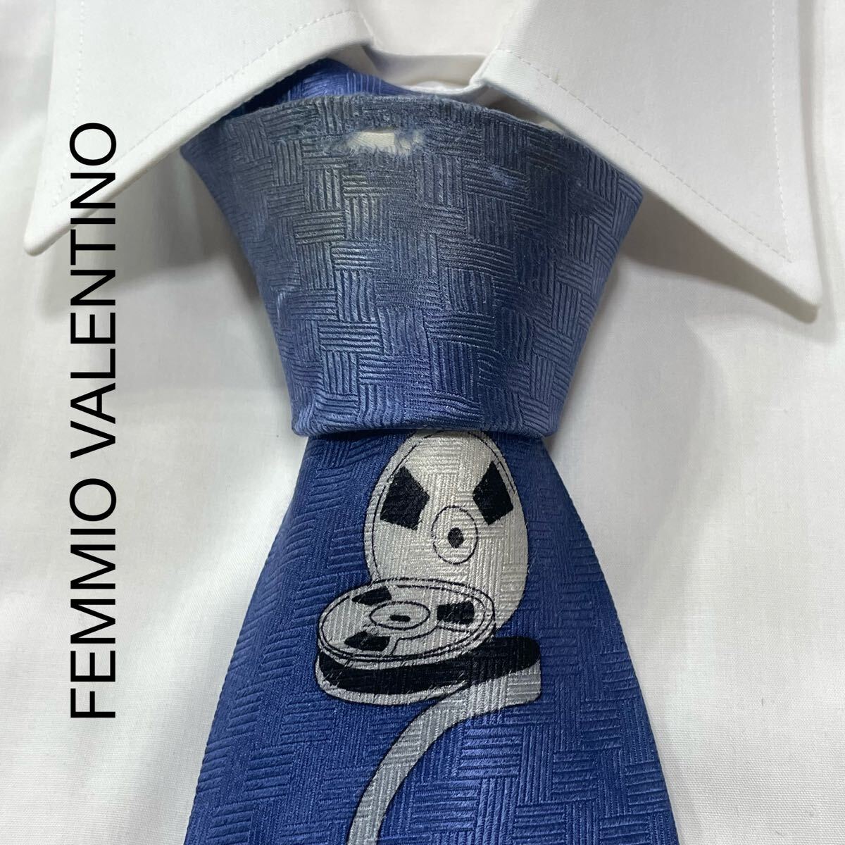 - FEMMIO VALENTINO カット フィルム シルク ネクタイ ブルー TG2588