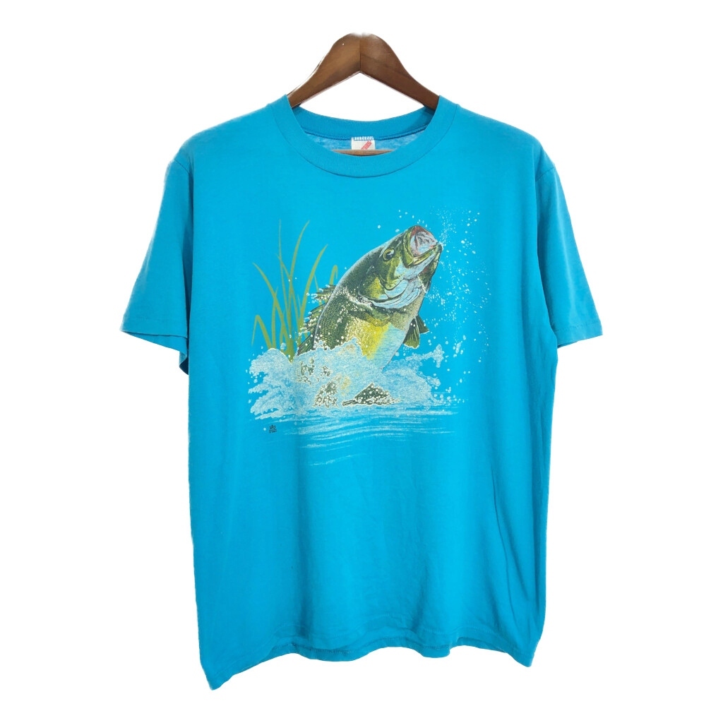 > 80年代 USA製 JERZEES ジャージーズ アニマルプリント 魚 半袖Tシャツ ブルー(メンズ XL)中古 古着 T7627