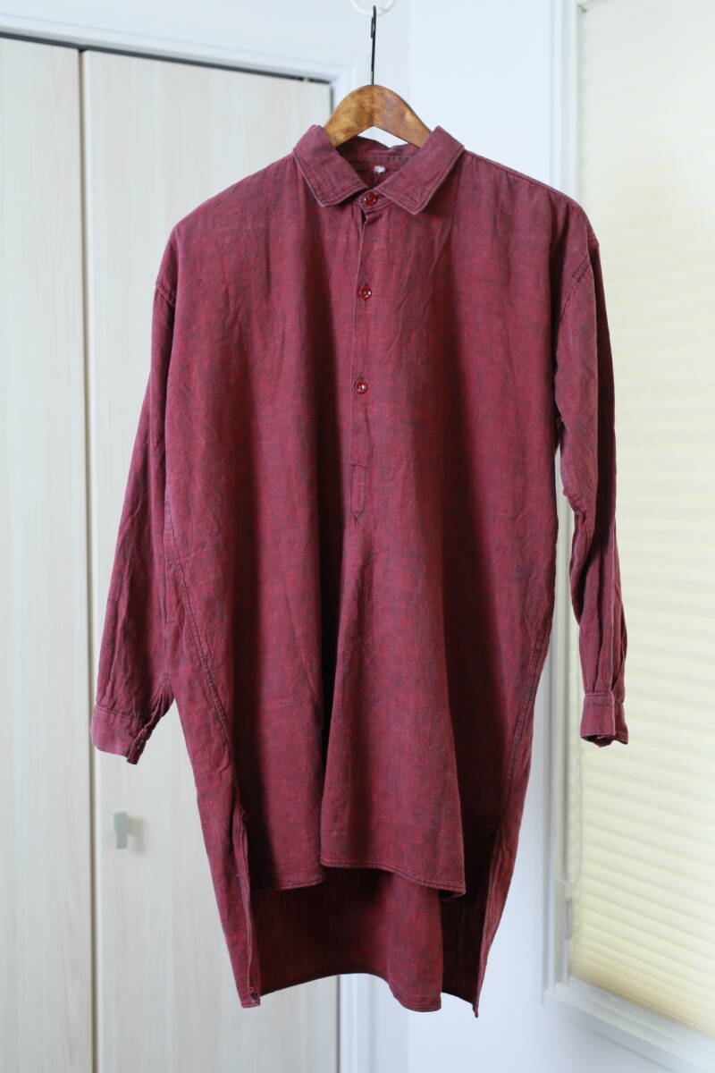 ヴィンテージ 海外ヨーロッパ仕入れ品 オーバーサイズハーフボタン長袖ロングシャツ