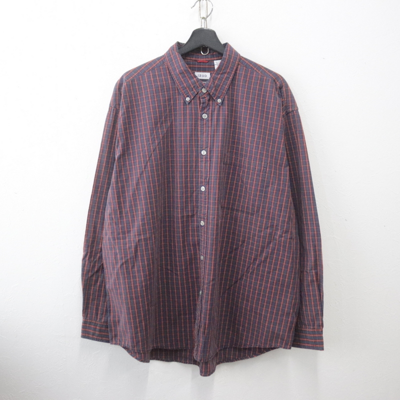 > E668 2004年製 IZOD 長袖シャツ■00s 表記XLサイズ ネイビー 紺 チェック ボタンダウン アメカジ ストリート 古着 激安 希少 古着卸