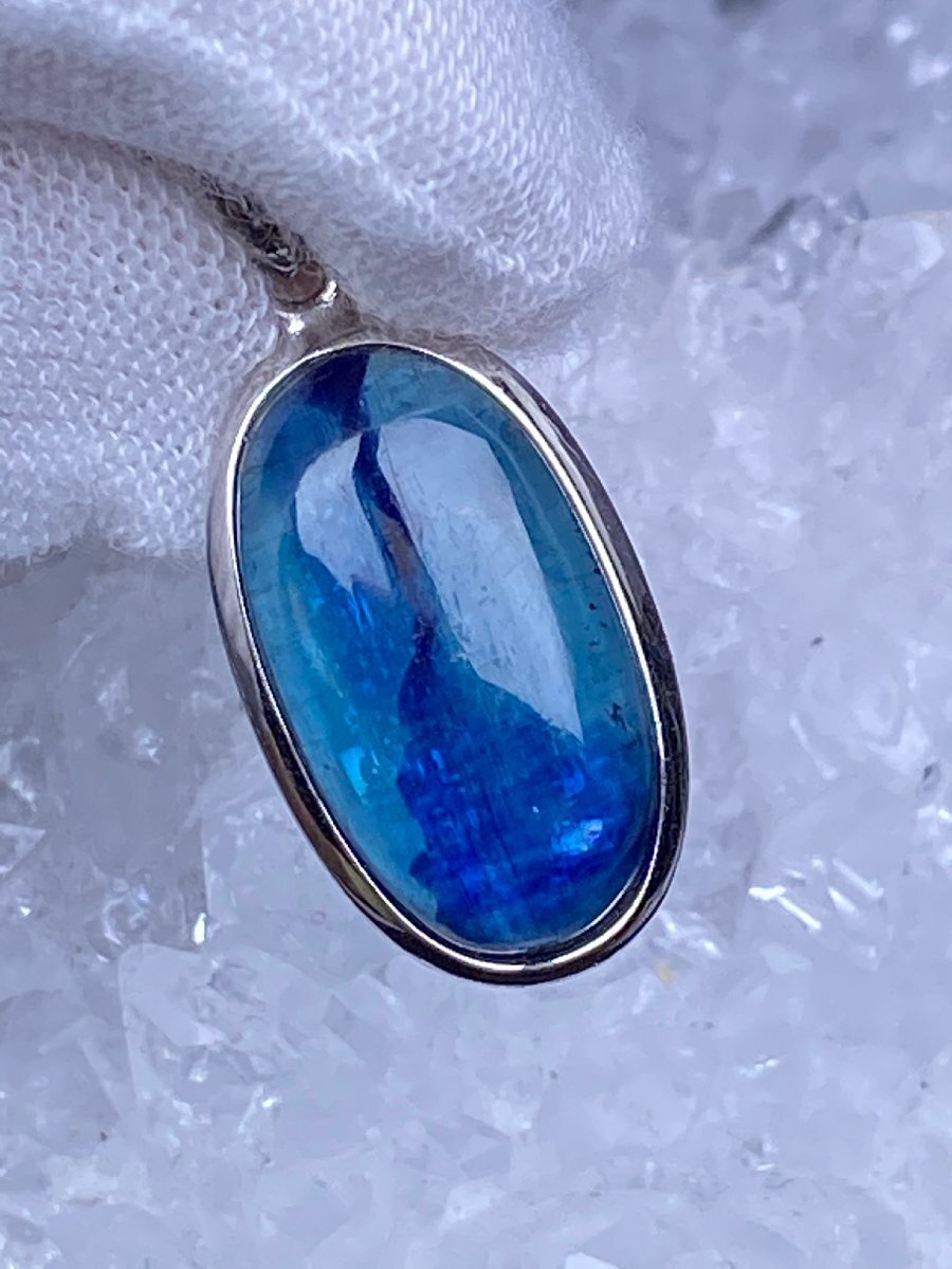 - 即決 0531f870 天然美品★【65A透明なカイヤナイト】★&925銀ペンダント 19.5x10.8x5mm(新品)