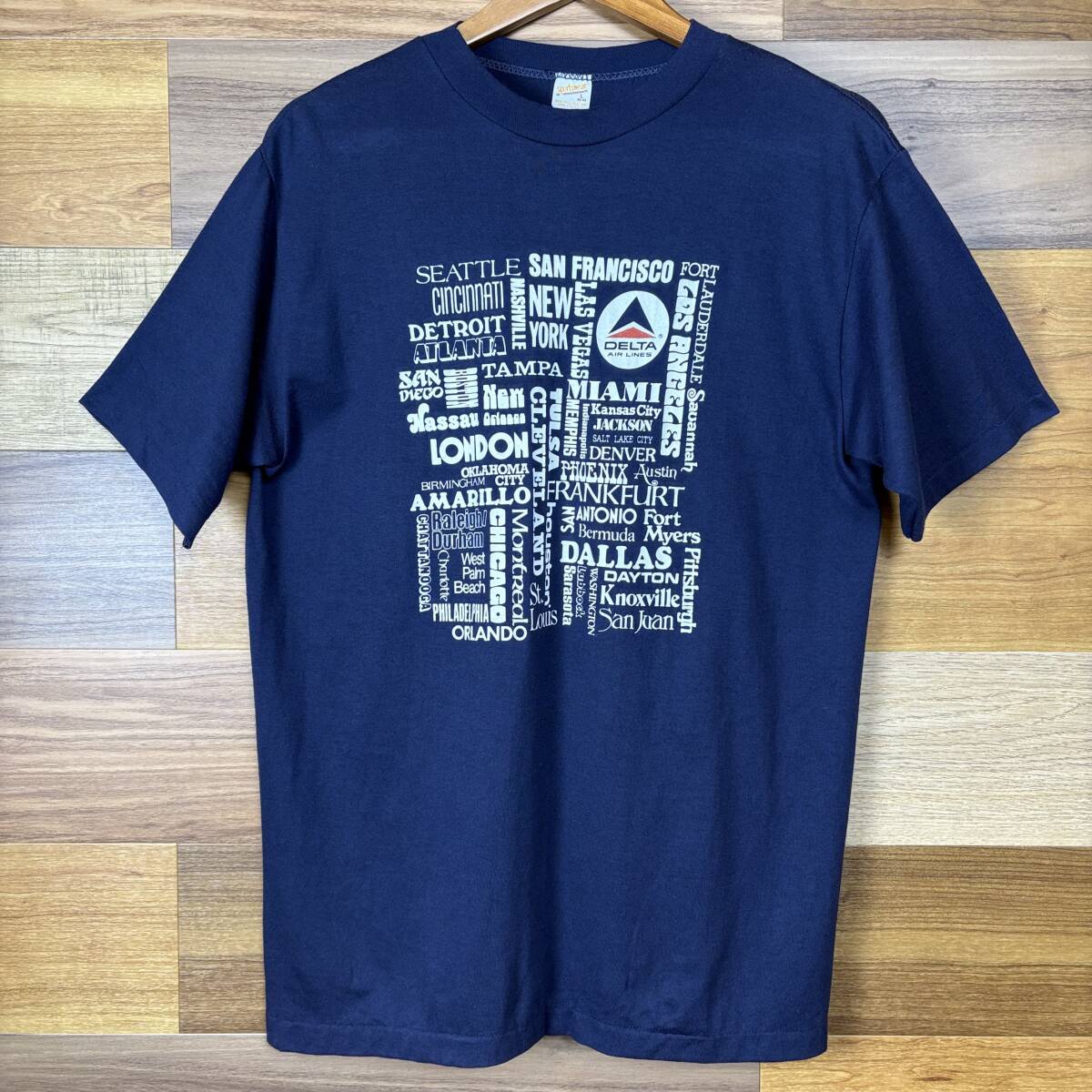 - USA製 80s DELTA AIRLINES デルタ航空 T-sh 企業 Tシャツ サイズ メンズ L シングルステッチ アメリカ製 80年代 VINTAGE 古着 r25062792
