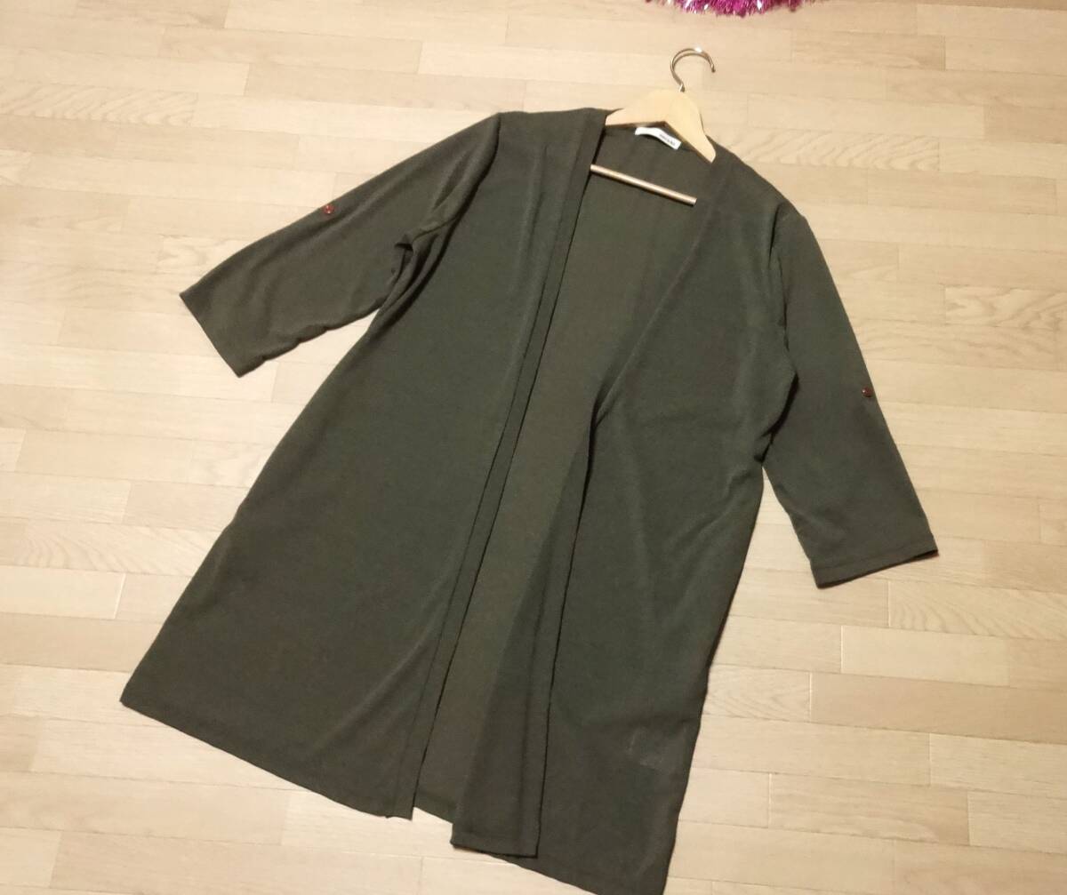 - ワールド♪【SHOO-LA-RUE】カーキロングカーディガン七分袖L★新品♪