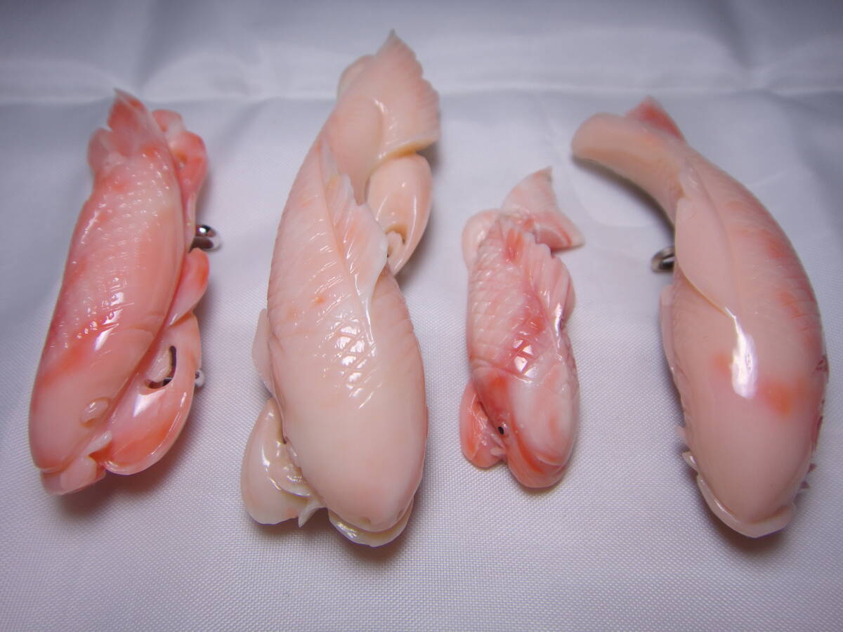 - 本珊瑚 サンゴ さんご 帯留め お魚 Bigサイズ! 4点おまとめ ルース1点含む 約326.15ct 繊細彫刻 レトロ ヴィンテージ Y691