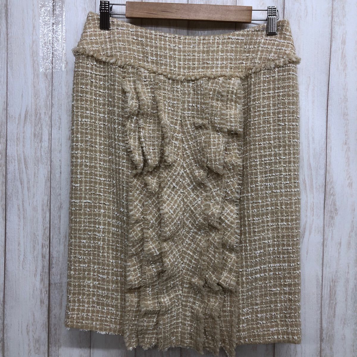 > 未使用 EPOCA エポカ ツイードスカート サイズ42 ウール フリル ひざ丈 日本製 ベージュ系 レディース YF415