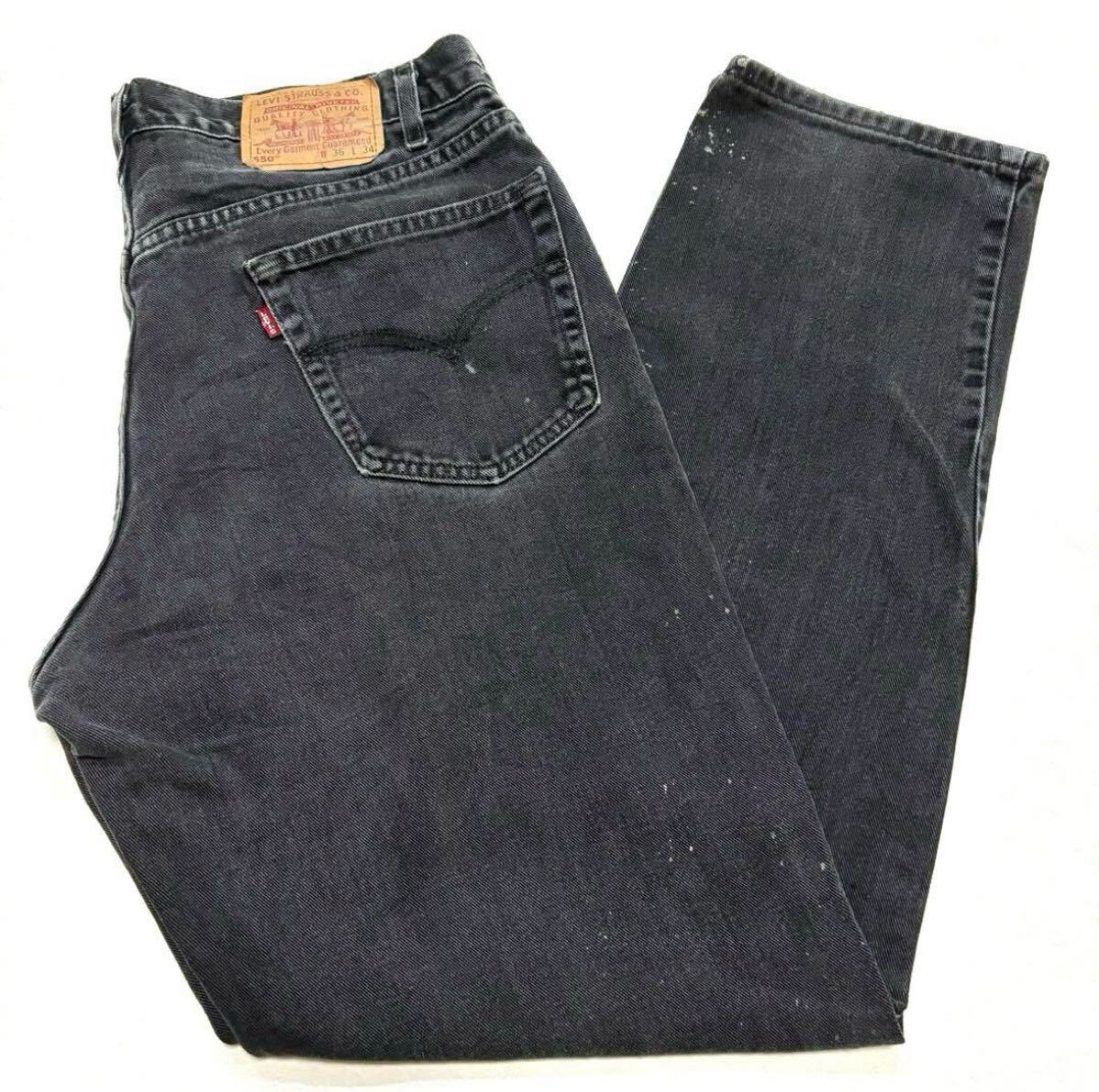 - 漂白飛び W36 メキシコ製 リーバイス 550 後染めブラック ジーンズ 黒 ボロ アメリカ 古着 デニム パンツ ジーパン ルーズ バギー ワイド