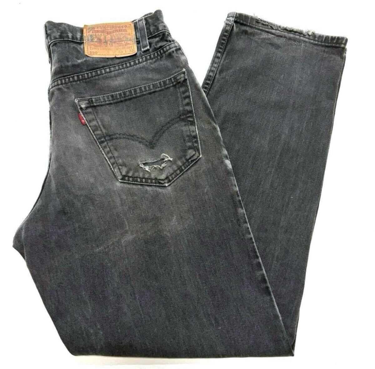 - ヤレ感抜群 W33 メキシコ製 リーバイス550 後染めブラック ジーンズ 黒 ボロ古着 デニム パンツ ジーパン ルーズ バギー ワイド ビンテージ