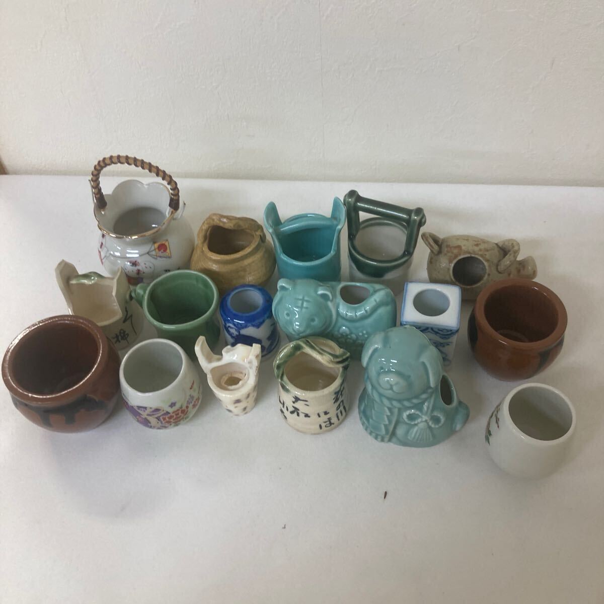 - 【爪楊枝入れ 17個まとめ】陶器 レトロ 収納 インテリア つまようじ【B4-1④】0710