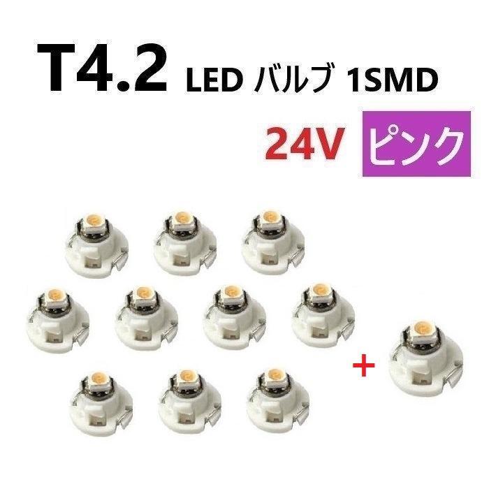 > T4.2 LED バルブ 24V ピンク 10個+1個 桃色 SMD ウェッジ メーター エアコン パネル 灰皿 バス トラック 大型 車 専用 定型外 送込