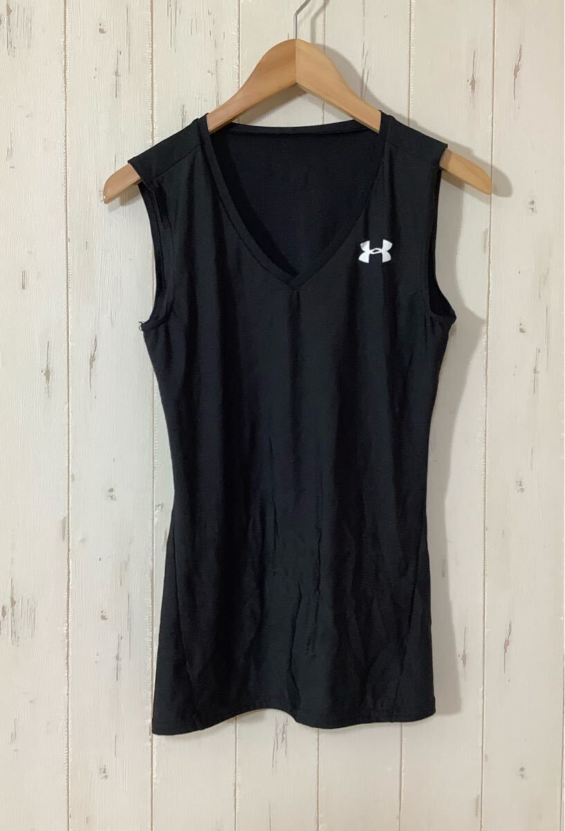 > ぬ1700 UNDER ARMOUR アンダーアーマー Vネック ノースリーブコンプレッション LG ブラック ロゴプリント インナーシャツ アンダーシャツ