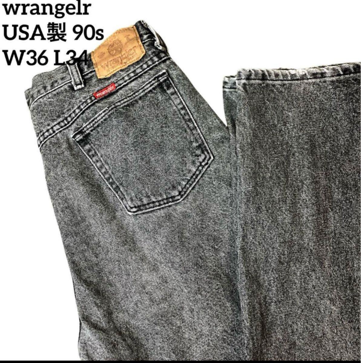 - USA製 90s ヴィンテージ wrangelr ラングラー 色褪せブラックデニム鬼フェードW36 ジーンズ ストレート ブラック