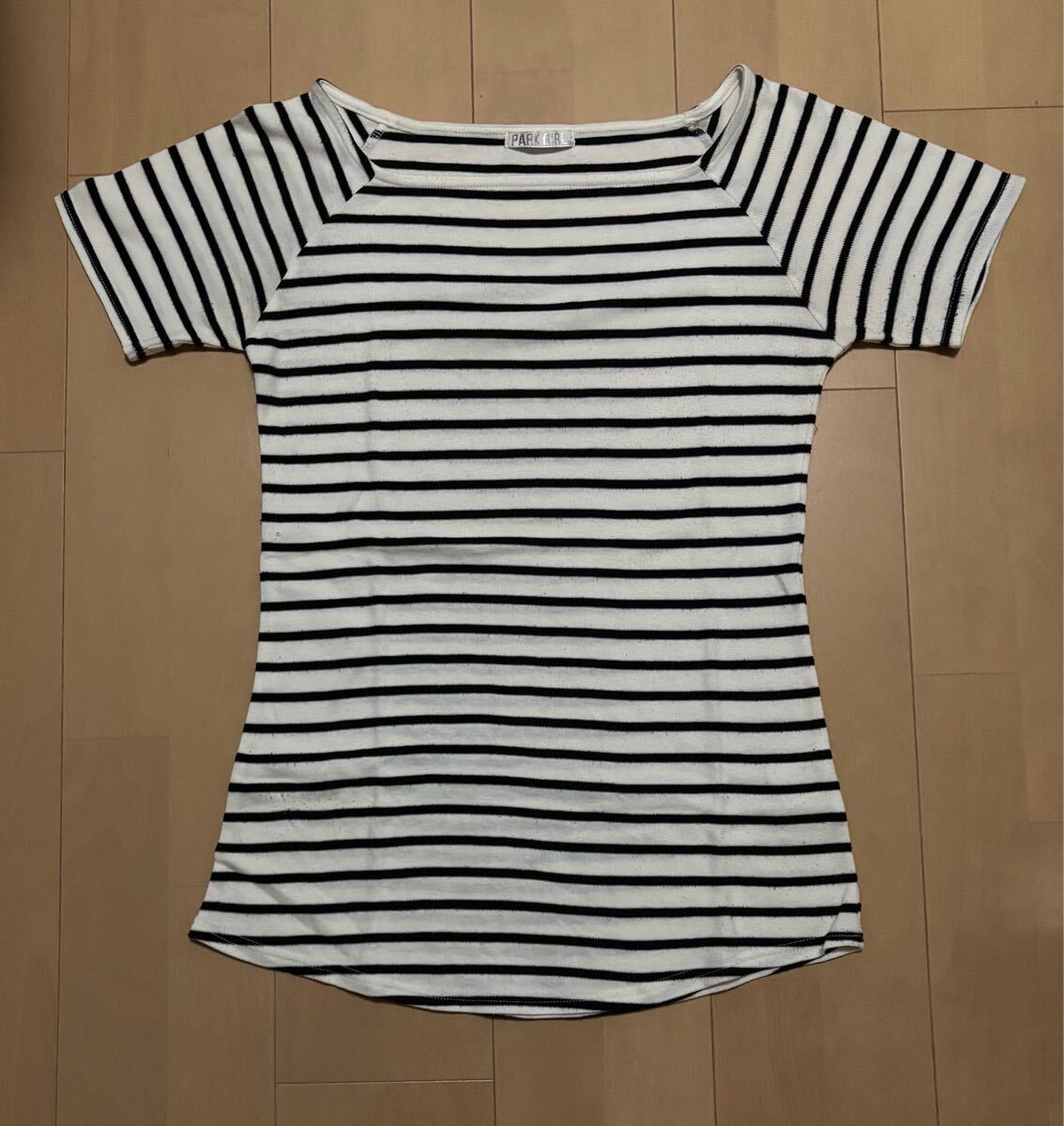 - PARK GIRL パークガール ボーダー半袖Tシャツ スクープドネック 白×黒 Lサイズ