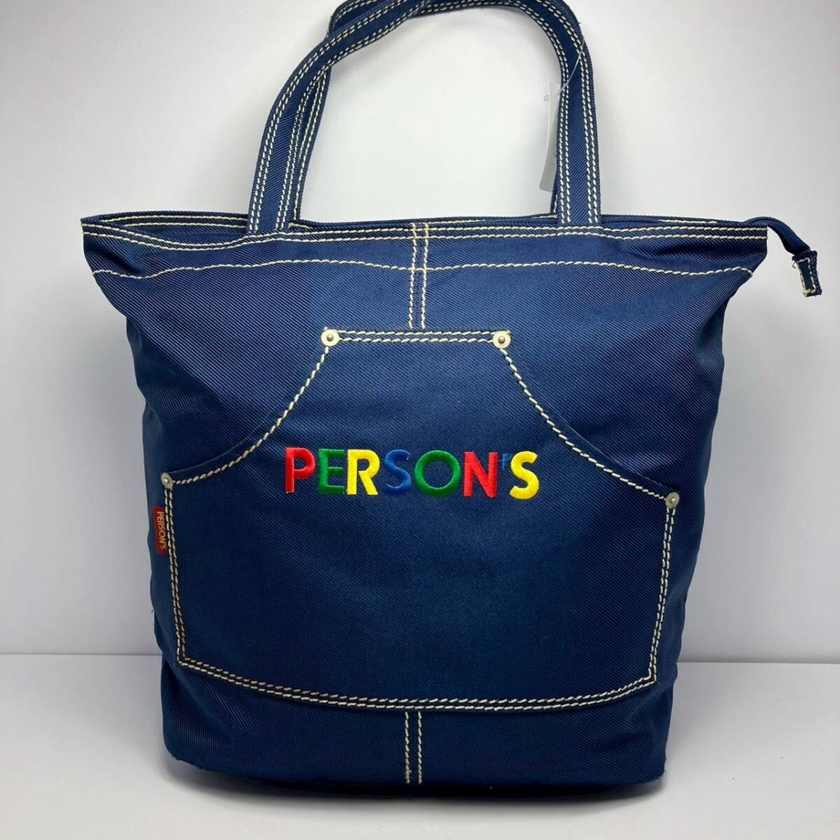 - BG39○ PERSONS パーソンズ トートバッグ ハンドバッグ デニムデザイン ジーパン ユニセックス 外ポケット ブルー 青 ネイビー 紺
