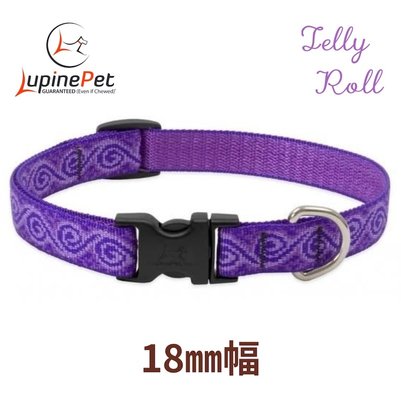 - ワンタッチ首輪・Mサイズ・18mm幅 ジェリーロール柄 33-56cm LUPINEルパイン アメリカ製 軽量丈夫 中型犬 アジャスタブル