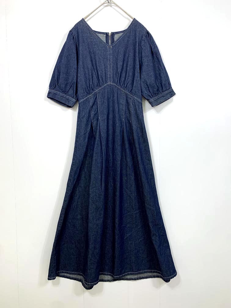 - ゆうパケットOK ap retro アプレトロ 245211-5 ボリュームスリーブ デニム ワンピース sizeF/紺 ■■