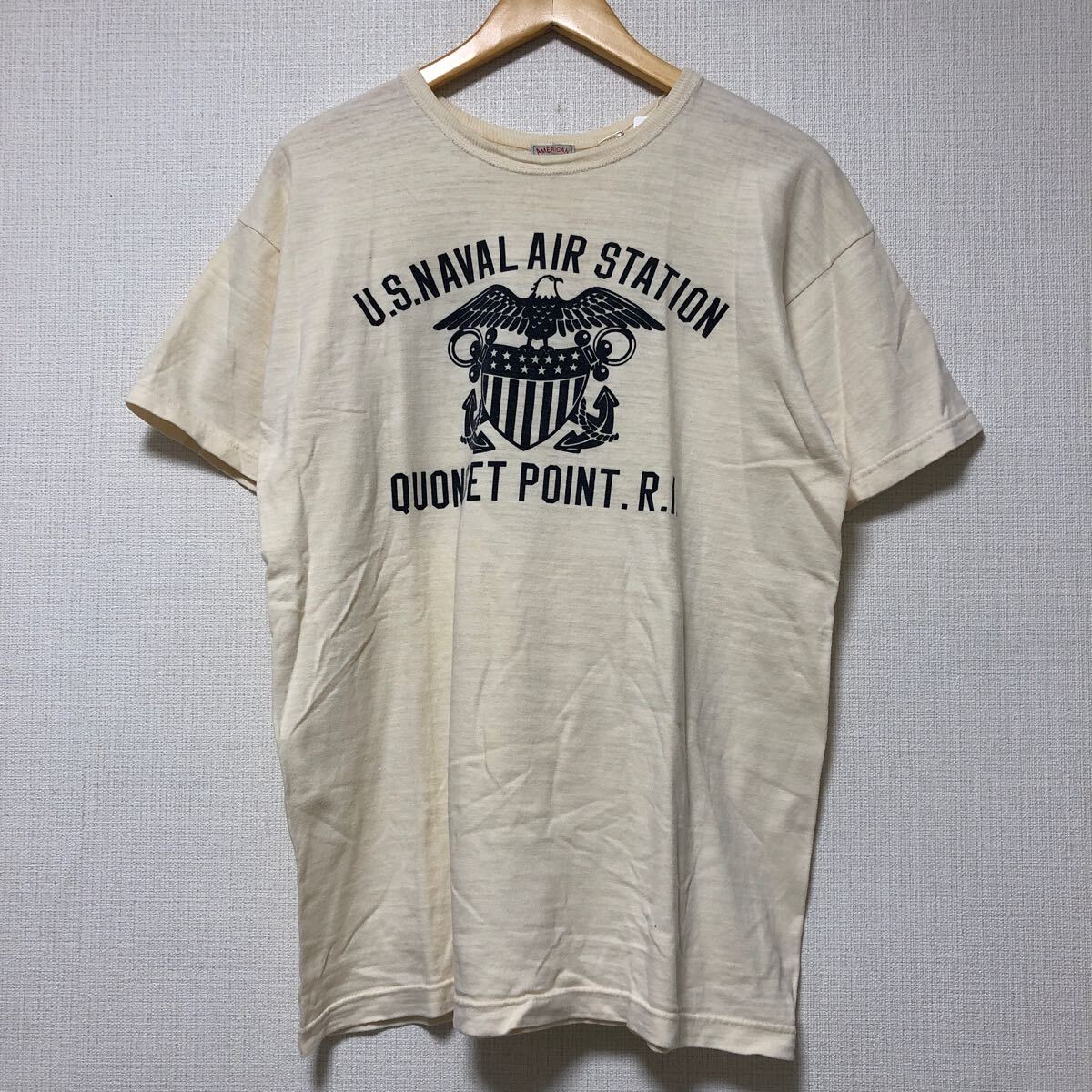> (k) The REAL McCOYS ザ リアル マッコイズ 42 ベージュ 半袖 tシャツ Tee プリント 日本製