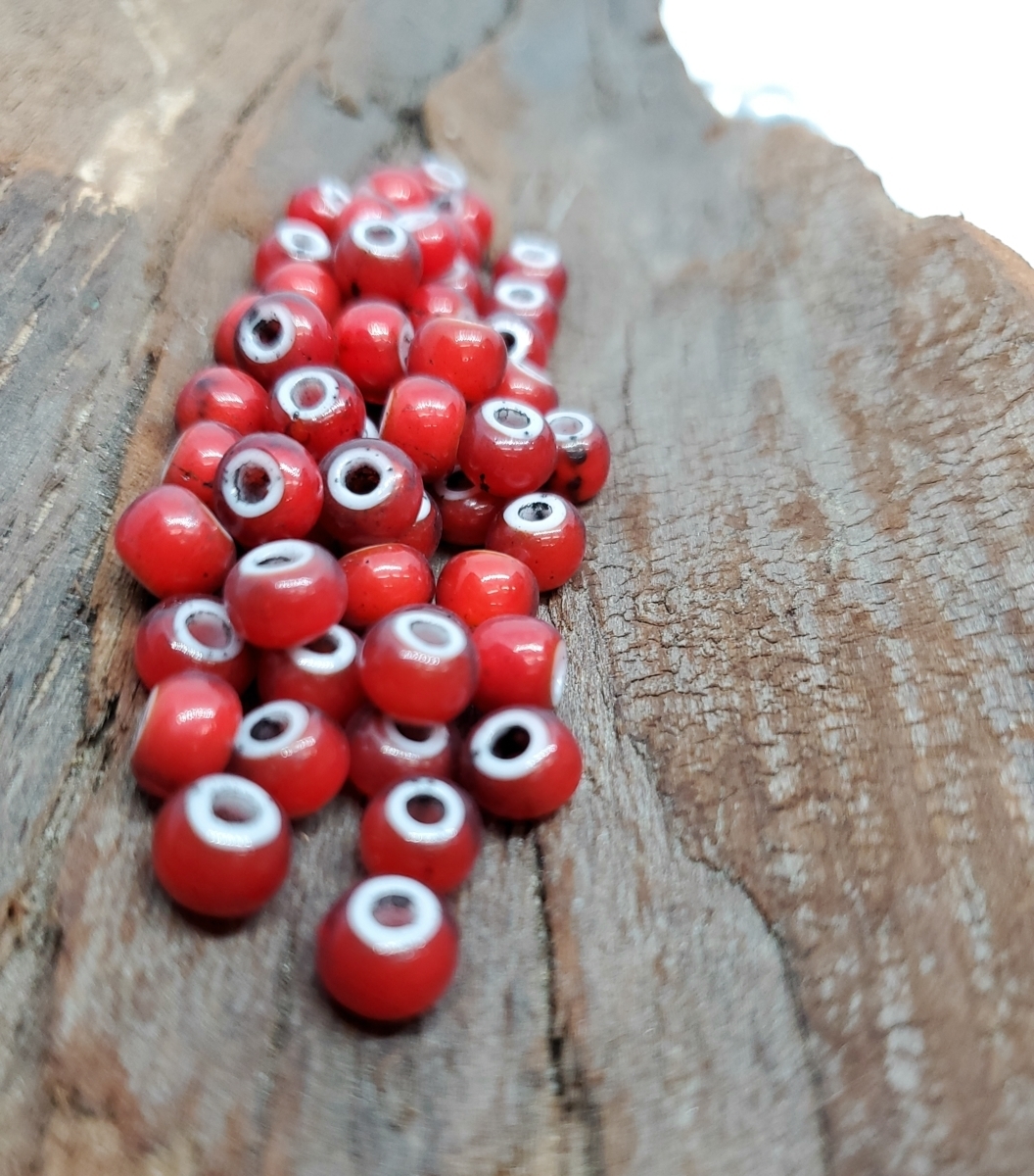 > Q-161★ホワイトハート★ビンテージレッド 直径約6.4mm前後【20粒1000円~】ガラス ビーズ (赤) 材料 インディアン ネイティブ アクセサ