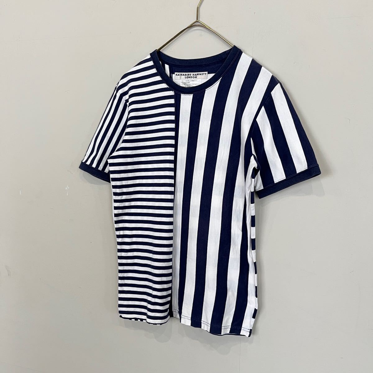 - KATHARINE HAMNETT LONDON キャサリンハムネット ロンドン 日本製 クレイジーパターンTシャツ カットソー ボーダー 半袖 M