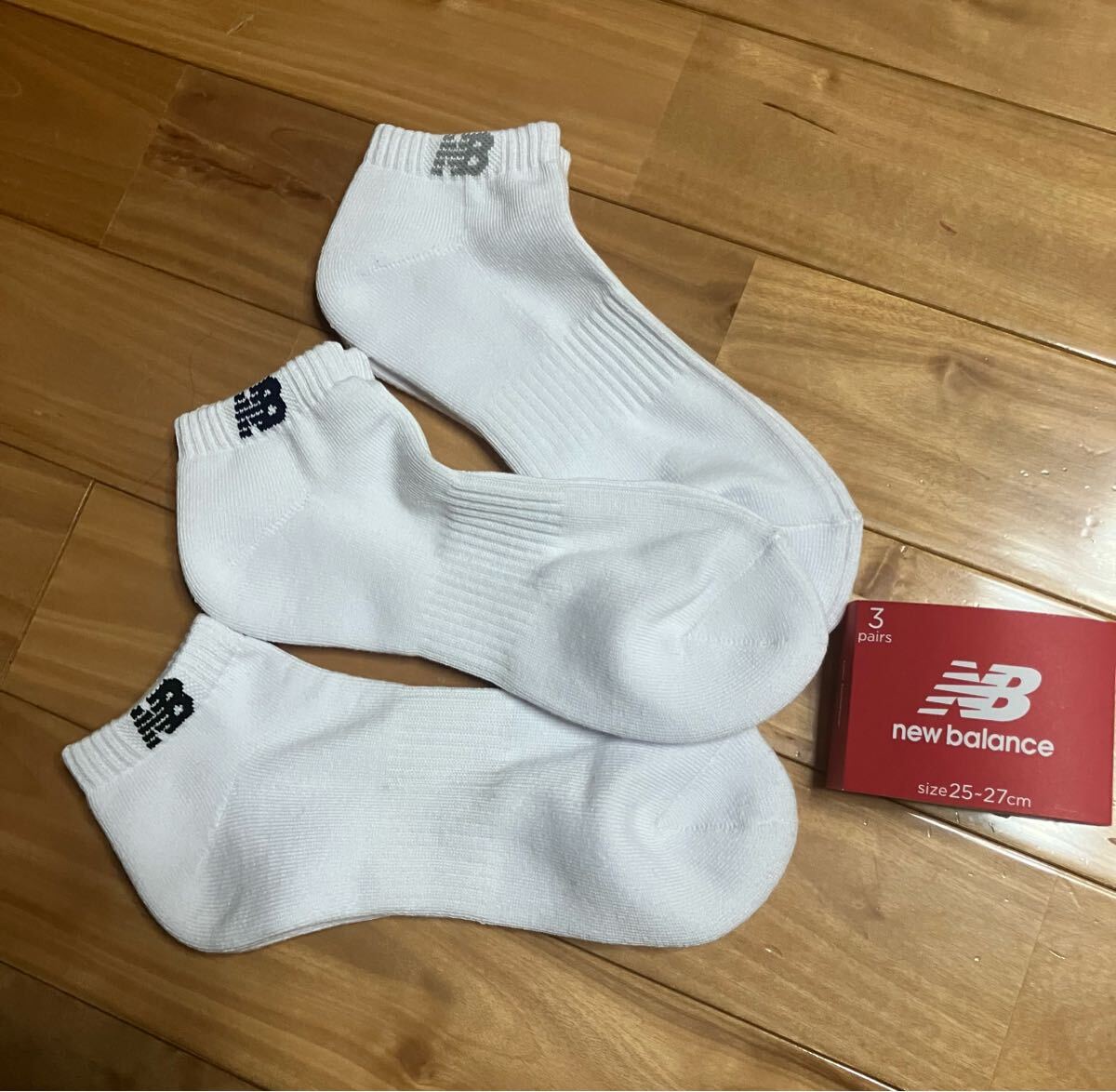 - NB ニューバランス ローカットソックス (L) 白 3足 25〜27cm