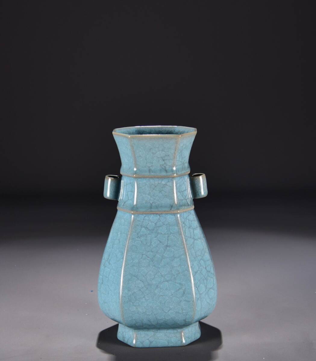 - 【仁】『宋・古陶瓷品・汝窯・天青釉・卷耳尊・陶藝』極細工 古董品 中国古玩 古美術 古美味 時代物 旧家蔵出