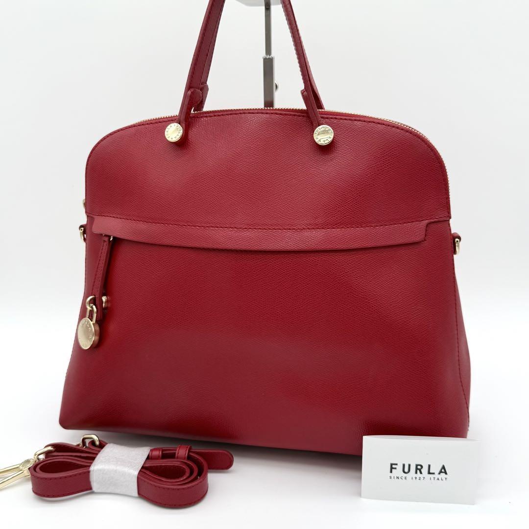 - 【美品】FURLA フルラ PIPER パイパー ハンドバッグ 2way ショルダーバッグ 斜めがけ ドーム型 南京錠 レザー レディース レッド CF310530B