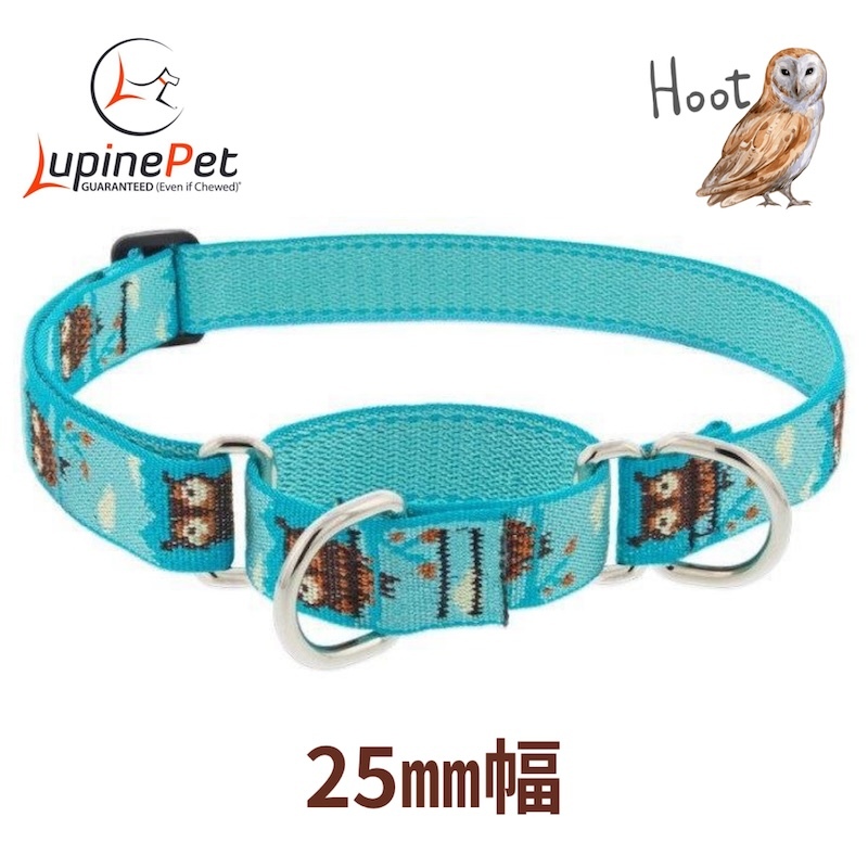 - ハーフチョークカラー・Mサイズ・25mm幅 フート Hoot フクロウ柄 38-55cm LUPINEルパイン アメリカ製 軽量 丈夫