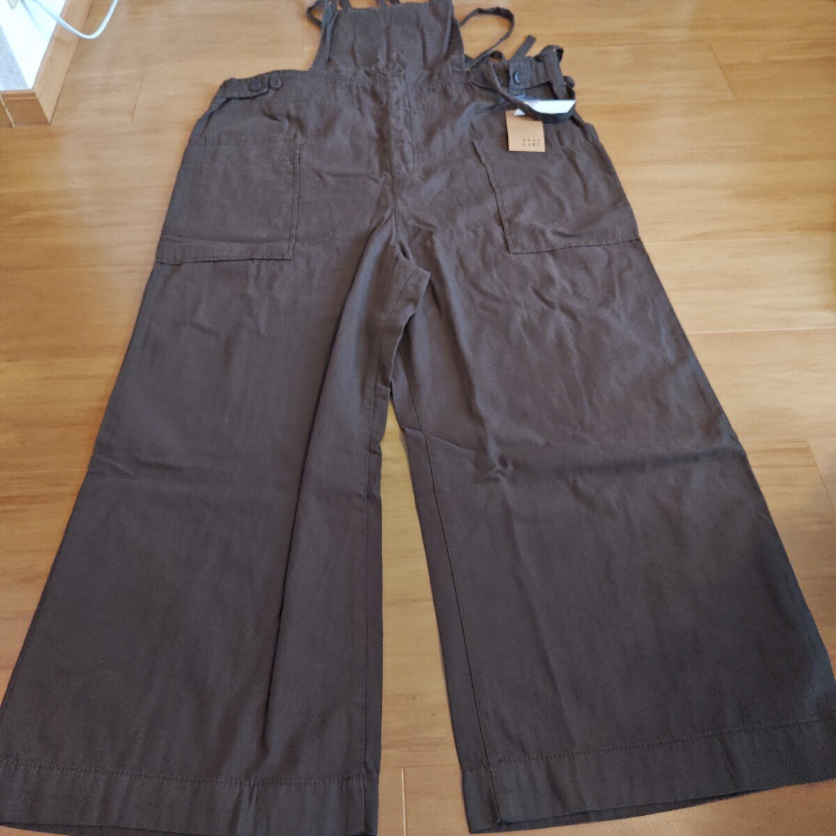 - レディース サイドビッグポケットサロペパンツ 大きいサイズ 3L カーキ サロペット パンツ at one ゆったり パンツ コットン100%