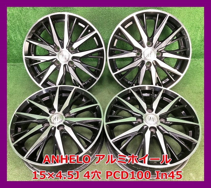 - ★15インチ ANHELO 中古 社外 アルミホイール 4本 4穴 PCD:100 IN45★