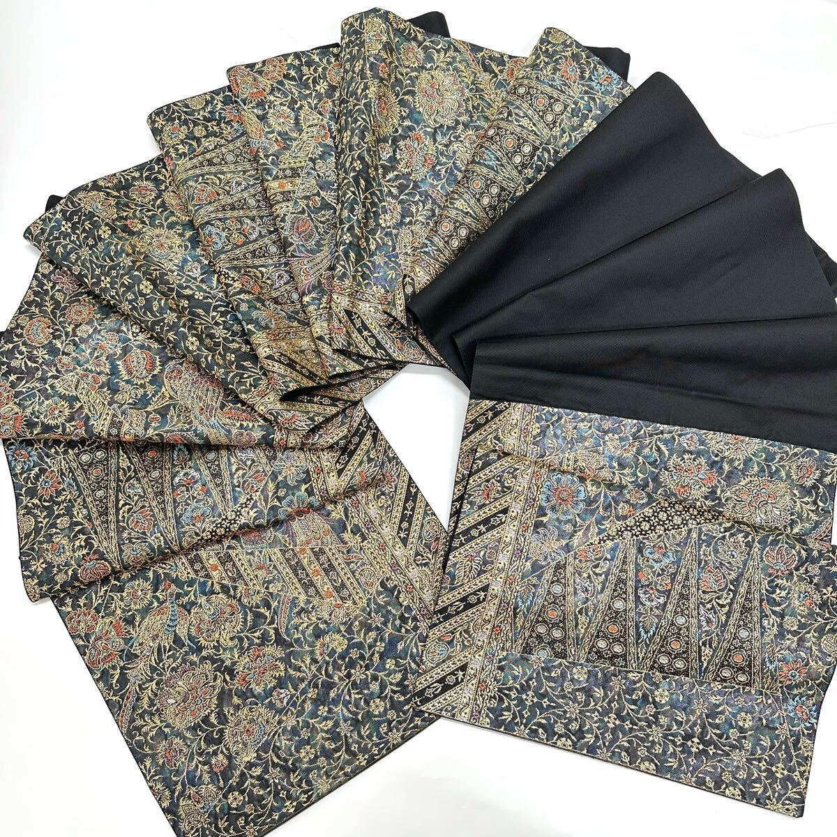 - 【七福】c644 逸品 高級品 正絹 袋帯 六通 華文 鳳凰 ラメ ゴールド 金糸 銀糸 刺繍 豪華