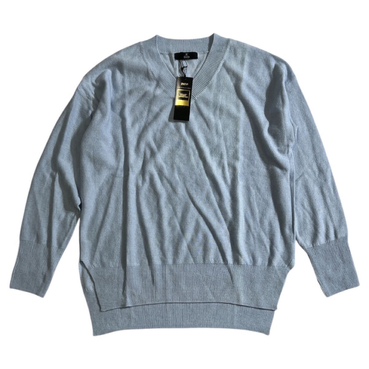 - 送料無料 未着用 定価 1.2万 ■ INED イネド ■ ウール混 長袖 サマーニット セーター ライトブルー 9