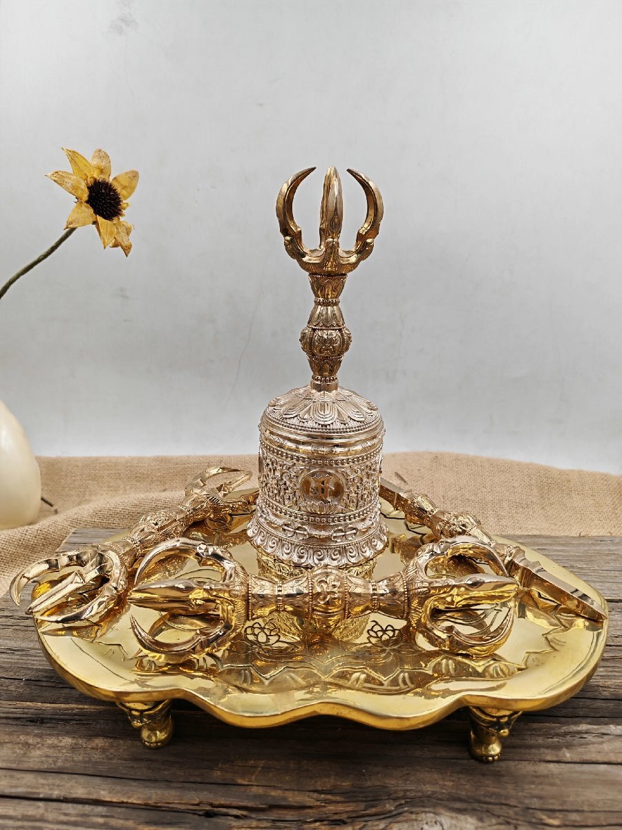 - 密教法具 鬼面 一鈷杵 三鈷杵 五鈷杵 鬼面鈴 金剛盤 5点セット 【送料無料】【仏具仏像専門店寶勝堂】