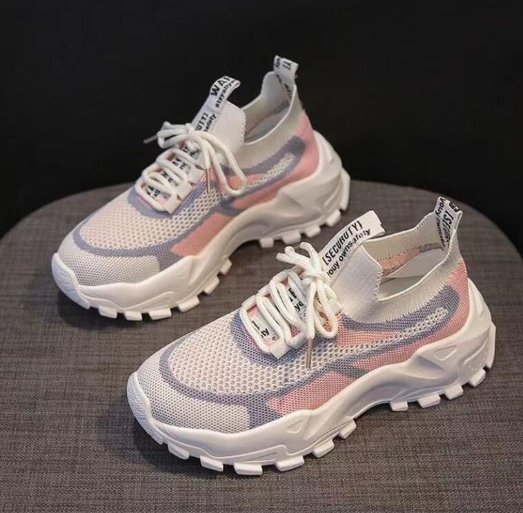 - 人気品ベーシック スニーカー 紐靴 シューズ 厚底 スタイルアップ ベーシック 通気性 ピンク 23~25cm サイズ選択可