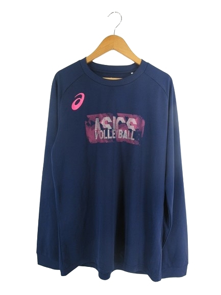 - アシックス asics Tシャツ 長袖 プリント サイズM ネイビー QQQ メンズ