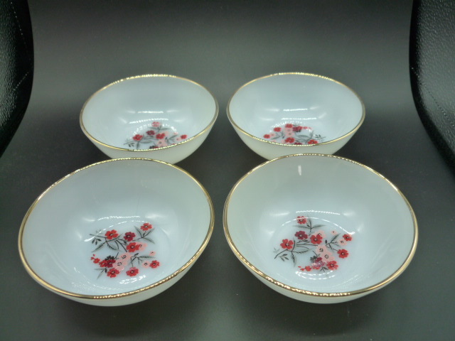 - ファイヤーキング FIRE KING プリムローズ Primrose デザートボウル×ゴールドトリム×4枚セット 未使用品 激レア美品