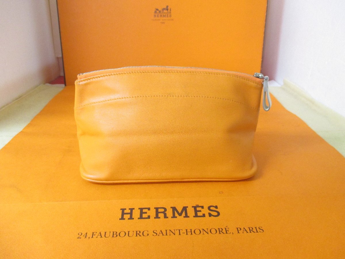 > 本物保証【即決で送料無料】エルメス/オレンジ/トユボユ/ポーチ/アニョーミロ/T刻印/レザー・革製/化粧/小物入れ/コスメ/エルメスの正規品