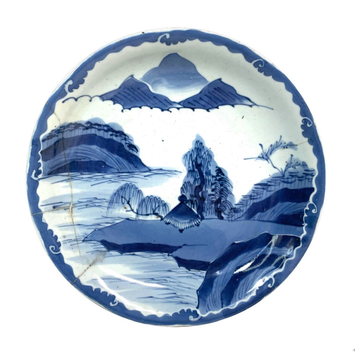 - 古美術 アンティーク 染付 大皿 飾り皿 飾皿 骨董 陶磁器 食器