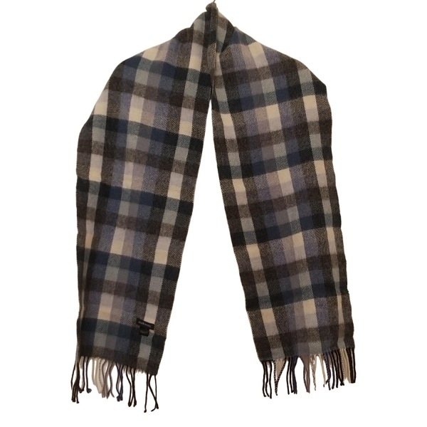- ニューヨーカー NEW YORKER - ウール ダークグレー×アイボリー×ブルー チェック柄 美品 マフラー