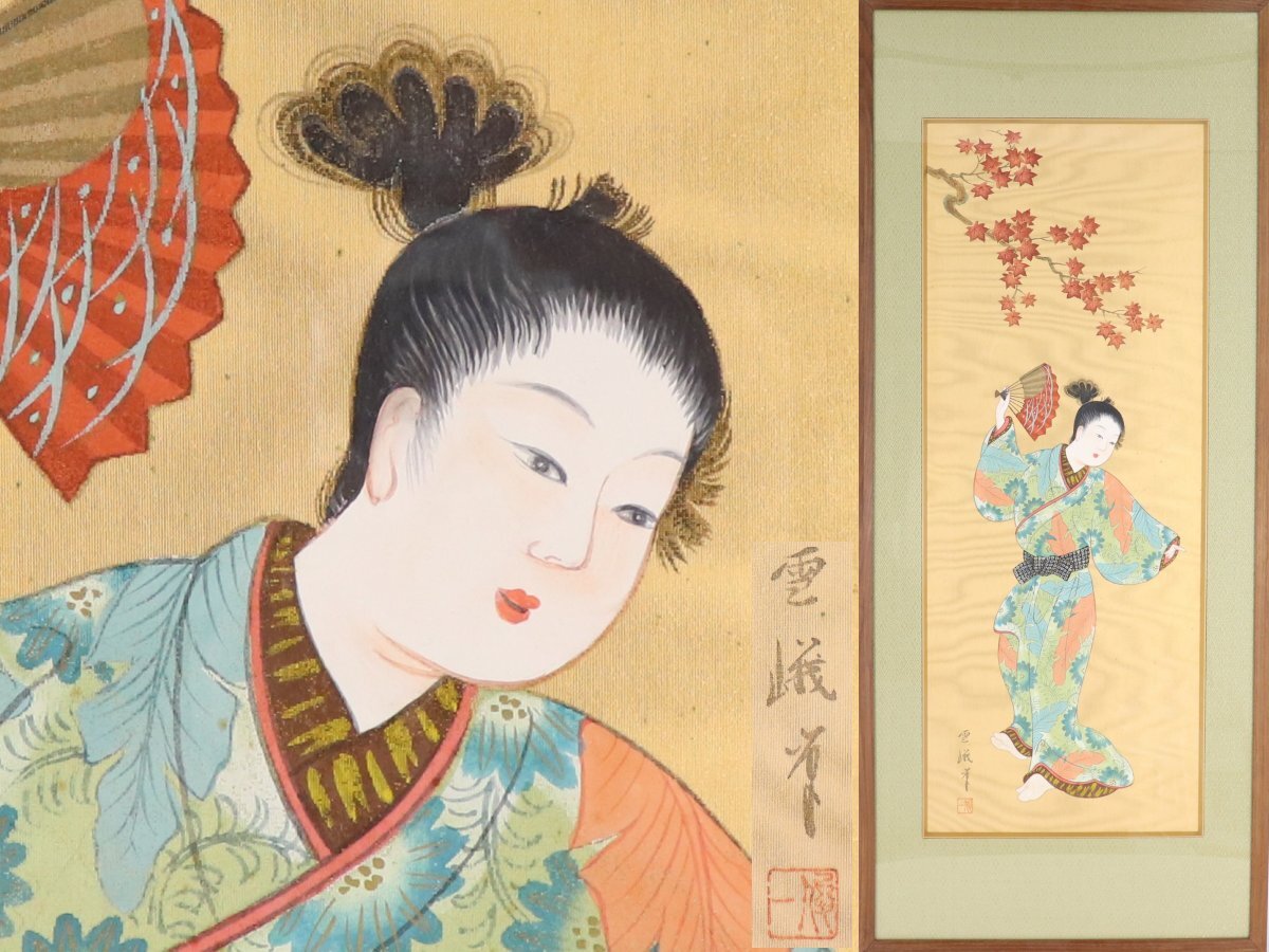 - ■真作■岡田雪峨・【立美人 秋】・人物画・美人画・絹本・額装・額寸 高さ109㌢・外紙箱・f7157h