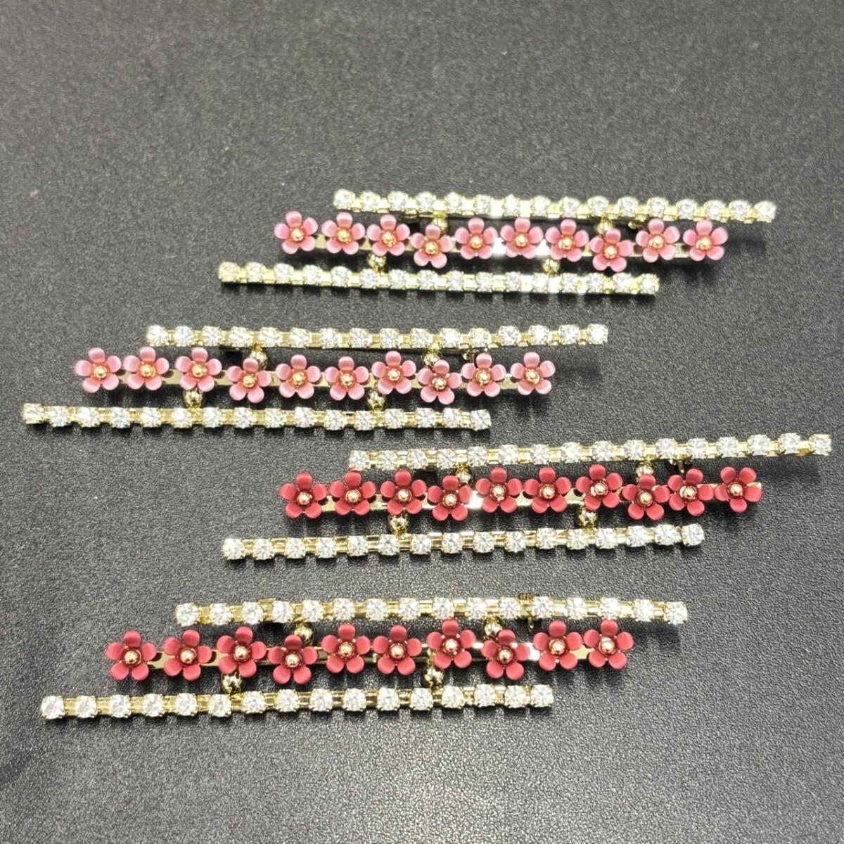 > ☆未使用 完成品 SWAROVSKI スワロフスキー ヴィンテージ 約4個 ブローチ 95×17mm ピンク 赤 クリスタル×ゴールド色 アクセ S107