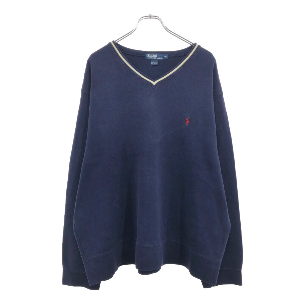 > 90年代 Polo by Ralph Lauren ポロ ラルフローレン Vネック スウェット 大きいサイズ ネイビー(メンズ XXL)中古 古着 U7409
