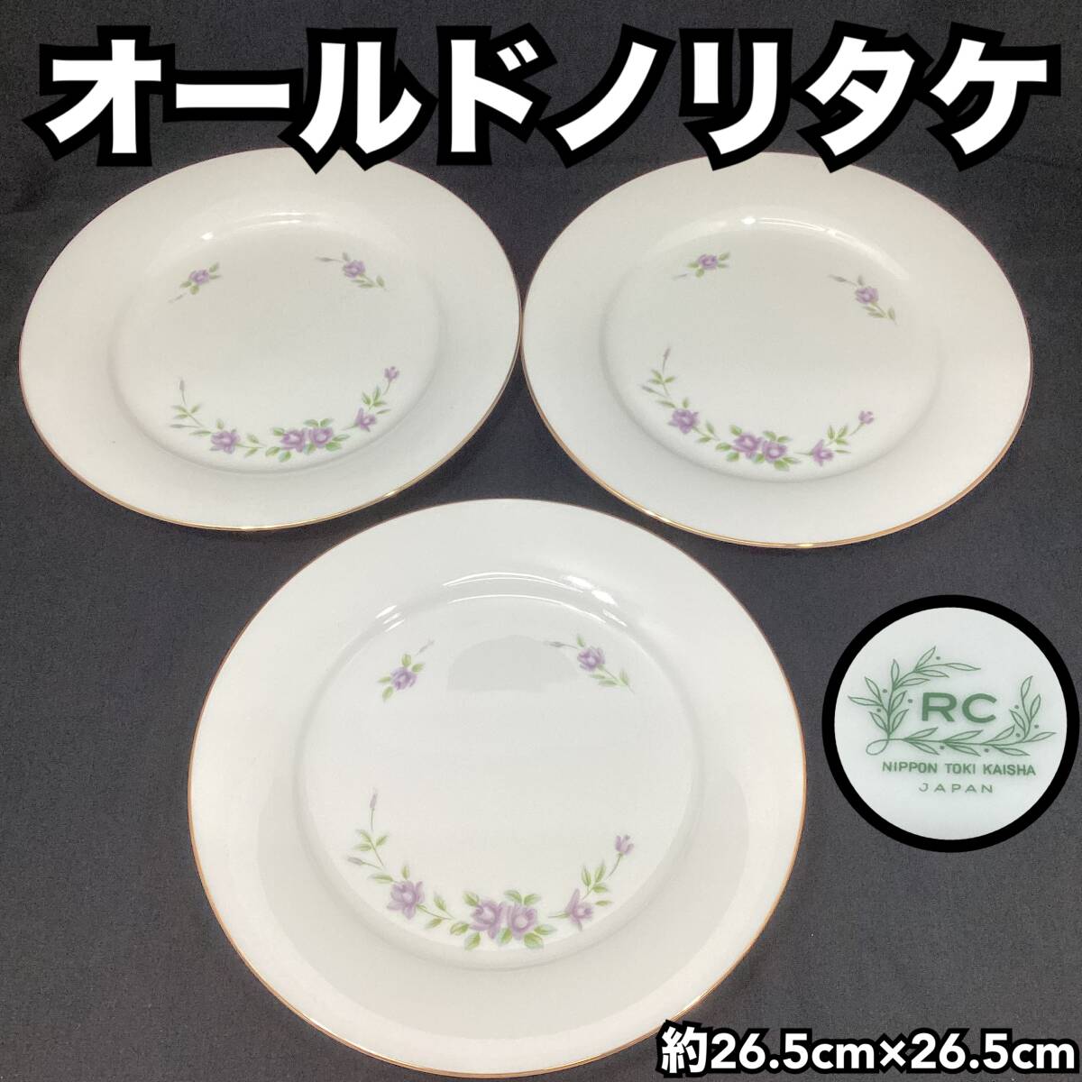 > オールドノリタケ 日本陶器会社 日陶 RC バックスタンプ ディナー皿 約26.5cm 3枚セット 則武 白磁 昭和レトロ 磁器OLD Noritake (H1749)